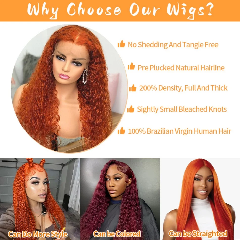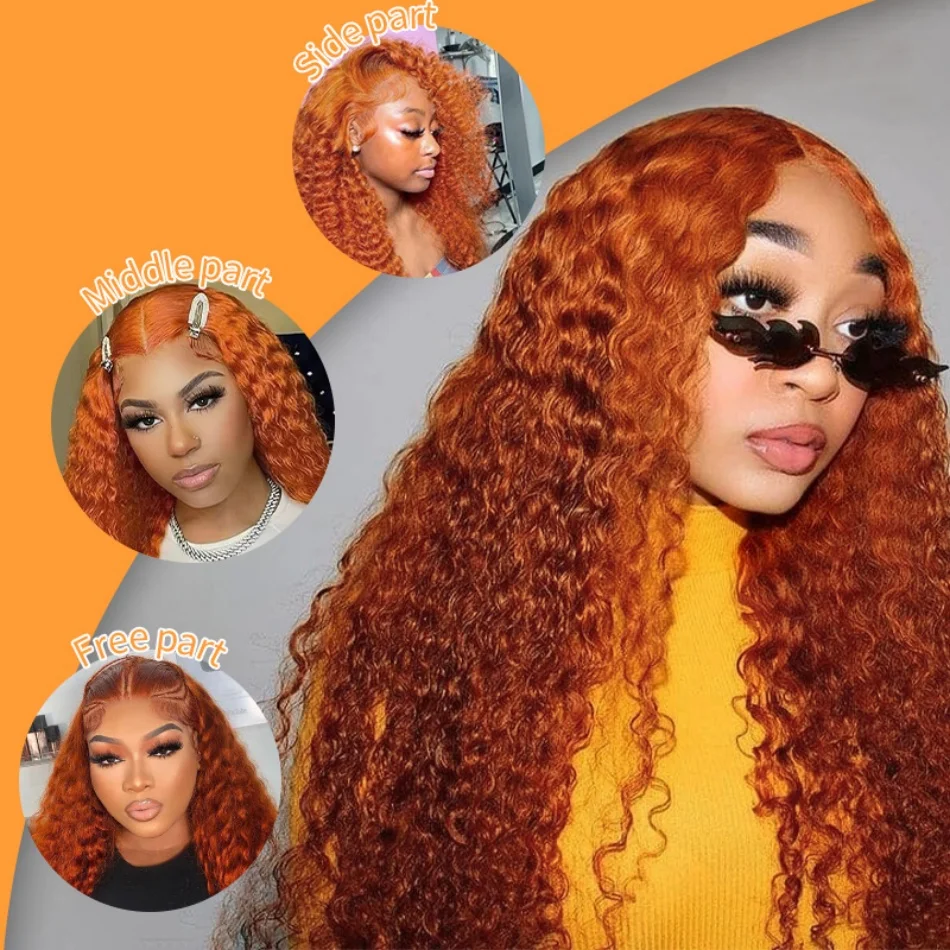 30Inch Orange Ginger Water Wave Lace Front Wigs 13x4 13x6 #350 Colored Wigs 100% Brazilian Human Hair Deep Curly Wigs 260Density